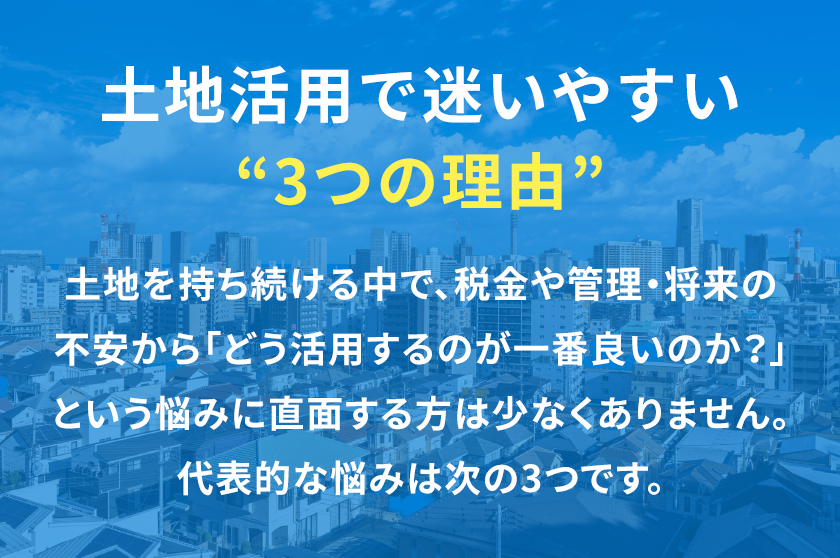 土地をどう活用すればよいのか、という悩みは多くの方が抱えています。